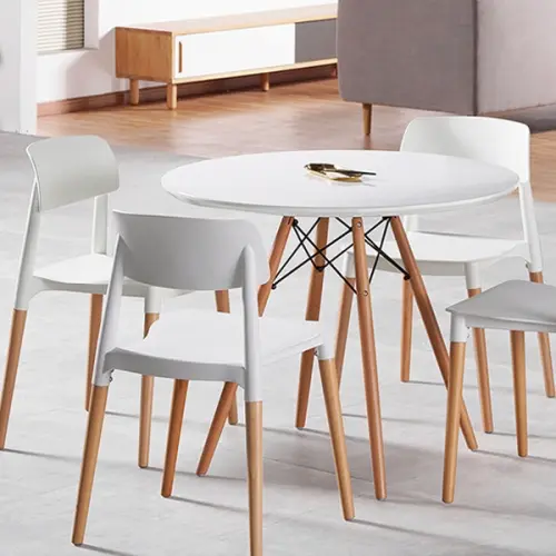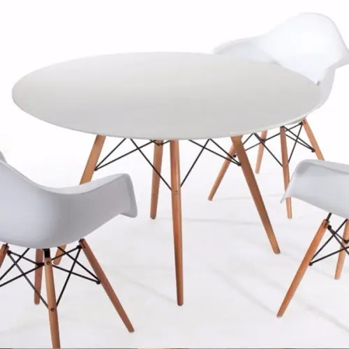 1. Name: Mid Century Modern Round Table Dining Table Wood Leg and top, white / Natural Finishing Dining Room Furniture Dining Table Wooden